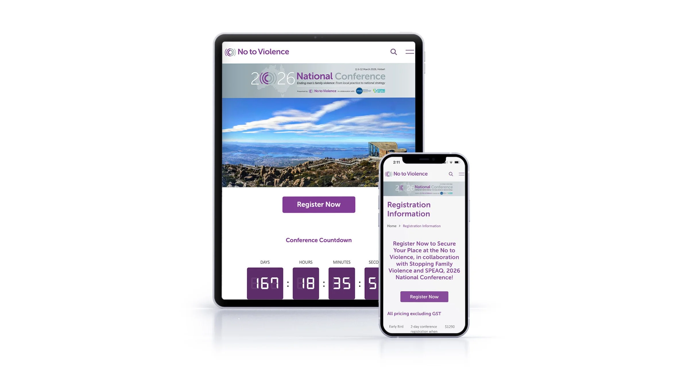 No to Violence, in collaboration with Stopping Family Violence and SPEAQ, needed a website to advertise their upcoming event and enable participants to register and as a point of contact and information portal for the 2026 National Conference
